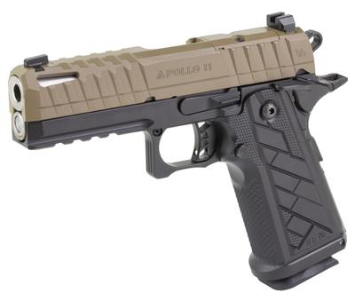 LFA APOLLO 11 V2 4.15" BBL, OR NS 2-18RD MAGS FDE/BLACK. This semi-auto pistol from Live free armory is chambered for 9mm with a capacity of 18 rounds. The barrel of this HG8642-N pistol measures 4-3/20" in length and reflects the quality firearm craftsmanship expected from Live free armory.