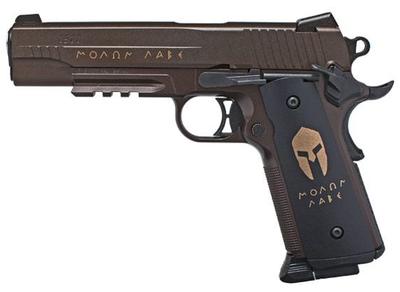 lMOLON LABE engraved on the grips and slide speaks loudly for this SIG Air 1911 Spartan version. Oil-rubbed slide and frame bring the true history of the SIG SAUER original to life. With custom Spartan grips and skeletonized trigger, this BB gun will have you training like a warrior.